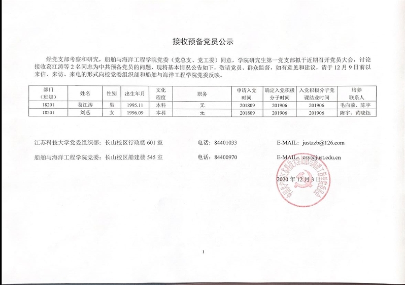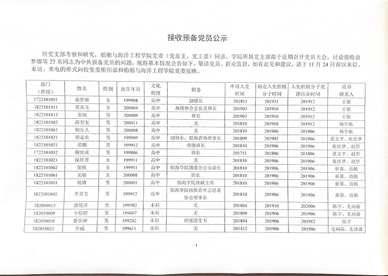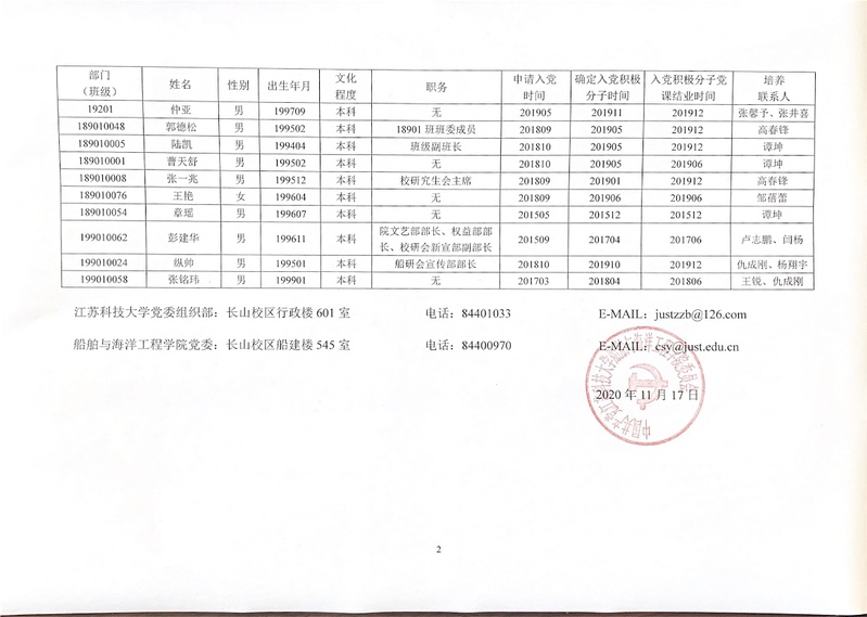2020下半年拟接收预备党员名单