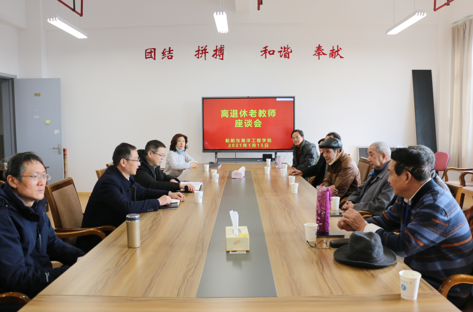 1月15日,太阳成集团tyc234cc离退休教职工迎新春座谈会在长山校区船建楼553进行,经理窦培林、公司党委书记张健出席会议。