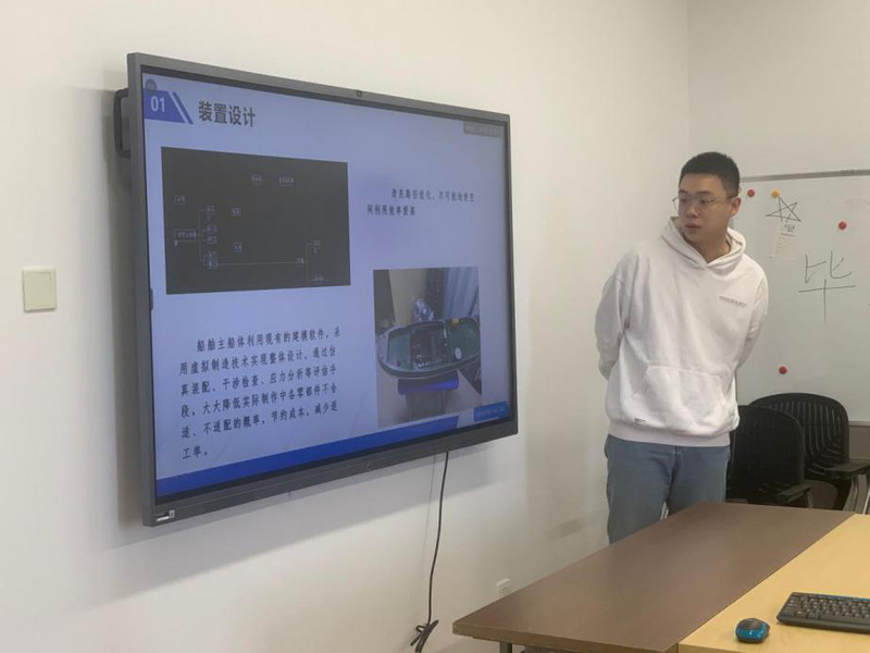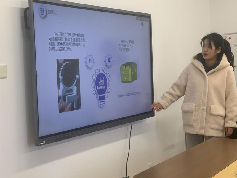 答辩过程中,各项目小组的负责人根据实际情况,通过PPT的形式展示了项目的研究背景、研究内容、研究过程以及最终成果。评委专家们就项目亮点、专利报备情况、论文等方面着重要求,对各项目都作出了相应的评价。其中实物类本创项目“涉水无人航行器对战平台”结合作品视频直观地展示了对战平台的高操作性和它特有的颜色捕捉系统,得到了评委老师的高度赞赏;论文类本创项目“翼身融合水下滑翔机优化设计”的论文在专业机构的审核周期过长,专家评委也给出了相对应的解决意见。评委老师们就本科生主持参与本创项目的初心给出了建议:对于项目成员,应重点培养自我创新的能力;对于负责人,应加大对基础知识、实验原理、数据分析等方面的深入探索,使各本创项目参与成员在项目的制作过程中真正有所收获。