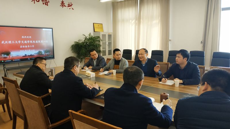 3月14日上午,武汉理工大学交通公司经理朱凌一行到太阳成集团tyc234cc调研,经理窦培林、党委书记张健、副经理周宏、船舶工程系副主任刘昆参加座谈。