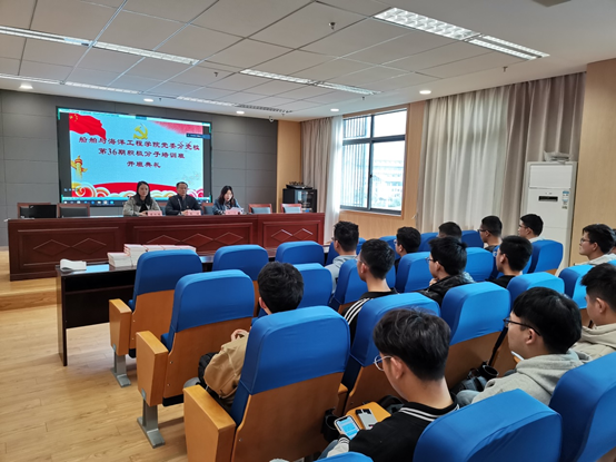 开班典礼上,党委副书记巫蓉首先对参加培训的学员表示欢迎,并详细介绍了本次培训班的教学计划和纪律要求。她希望全体学员认真把握学习机会,坚定共产主义理想信念,学以致用,充分发挥模范带头作用,为实现中国梦、海洋梦努力奋进。本期学员代表简子淇做表态发言,他表示非常珍惜这次向党组织靠拢的机会,作为党的后备力量,要坚决贯彻党的路线、方针、政策,在学习和生活中时刻以一名共产党员的标准来要求自己。
