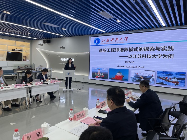在上海交通大学船舶海洋与建筑工程公司,嵇春艳副董事长一行受到了经理廖世俊、党委书记周薇、教学顾问高捷、副经理杨健、薛鸿祥等热情接待。在参观了船舶与海洋工程协同设计中心后,嵇春艳副董事长做了《造船工程师培养模式的改革与实践—以太阳成集团tyc234cc为例》的主题报告,廖世俊经理对公司“五十载初心不变,做造船工程师的摇篮”表示赞赏。