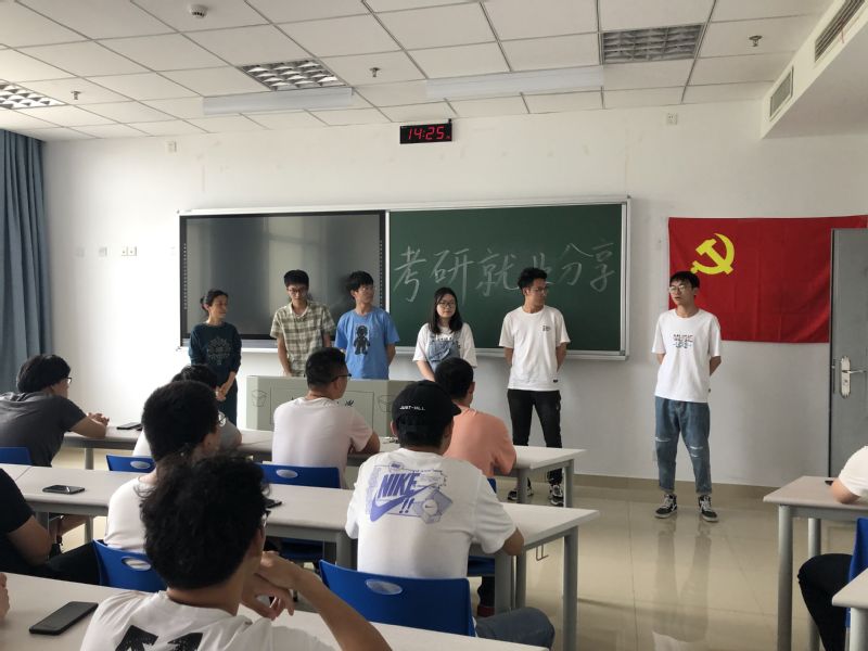交流会中,支部党员刘李晨为大家分享了他的备考计划和学习方法。李振岳分别从专业、英语、政治三方面分析专业复习的要点。老党员赵哲向同学们分析了面试中的相关技巧,使同学们对这一方面的知识有了进一步的了解。