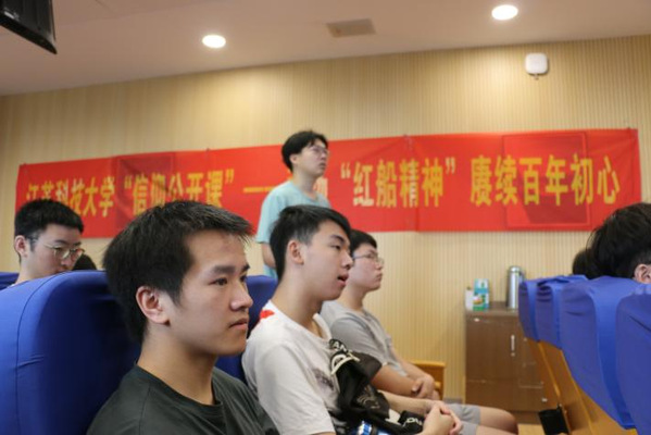 李伟亮员工首先与全体师生分享了自身的学习经历、工作之路以及总结感悟。他用朴实真挚的口吻与同学们分享了自己的工作历程,拼搏与奋进伴随着他一路成长。他坦言自己在奋斗历程中始终把提高自我作为一项驱动力。从码头工程施工管理到交通运输部“十三五”内河水运重点船舶基地建设管理再到预制构件生产工厂建设管理以及当下正在进行的南京江北新区办公大楼建设管理工作,丰富的工作经历让李伟亮员工感受良多,他向同学们细致地讲述了“红船精神”、党史培育在他一路拼搏中发挥的重大作用。以亲身经历诉说着大党和小船、沧桑与青春、使命与担当的红色初心,与会团员青年满怀敬意,与“立大志、明大德、成大才、担大任”的青春誓言共勉。