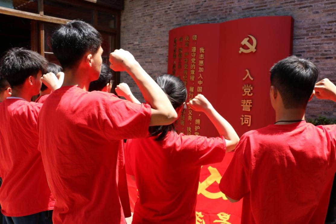 在馆内入党誓词立碑正前方,船海公司景荣春员工党支部青年党员重温那段神圣的宣誓词:“我志愿加入中国共产党,拥护党的纲领,遵守党的章程,履行党员义务,执行党的决定,严守党的纪律,保守党的秘密,对党忠诚,积极工作,为共产主义奋斗终身,随时准备为党和人民牺牲一切,永不叛党。”红色文化衫与党旗遥相呼应,在阳光的映衬下更加鲜艳。青春的声音铿锵有力,目光坚定,朴实的誓言中有着不可动摇的力量。