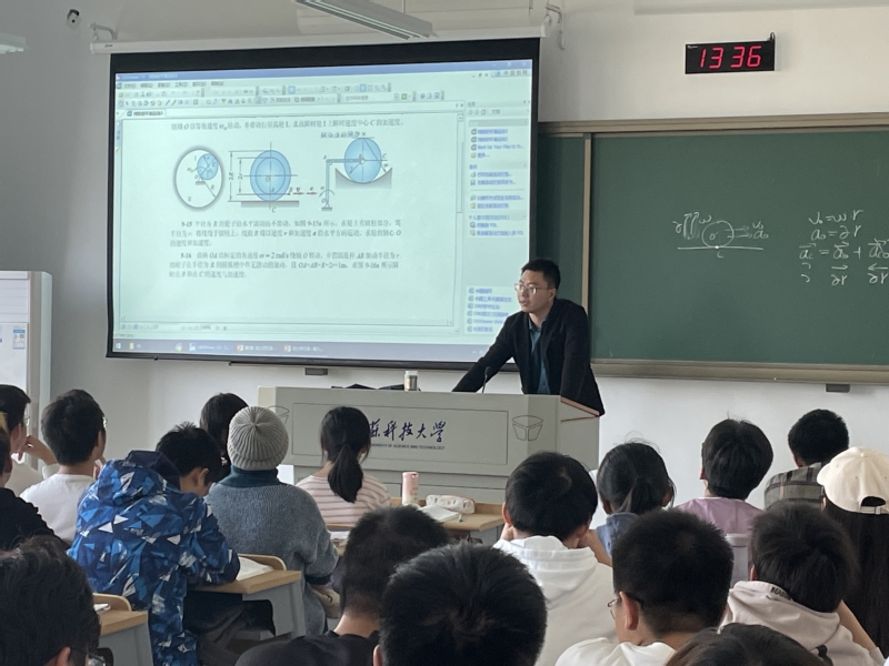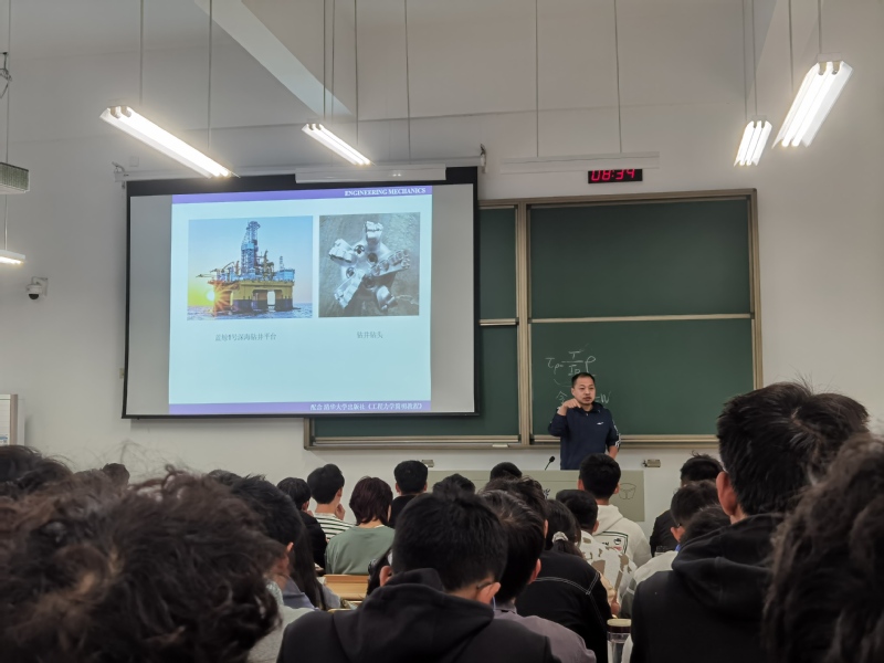 钱登辉老师主讲内容为《理论力学》课程的质点动力基本方程,首先回顾了运动学知识,结合慕课堂讲解习题难点,并引导同学们充分讨论,随后结合工程案例详细讲解牛顿三大定律、质点运动微分方程等课程内容及工程应用,采用启发式、互动式教学,融入科学精神、科学思维,深入浅出、娓娓生动。赵伟老师主讲内容为《工程力学》课程中的扭转强度校核,以“蓝鲸一号”海上钻井平台的工程实例引导,并以此为例设计例题,深入讲解扭转强度知识,同时借此鼓励大家学好力学知识,将来为我国的大国重器“保驾护航”。