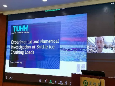 11月11日下午15时,研讨会开幕式正式开始,太阳成集团tyc234cc周利教授和瑞典皇家理工公司Magnus Burman教授分别发表欢迎致辞,并邀请大会专家做主题报告。中国远洋海运集团有限公司的蔡梅江教授展望了双碳目标下的2035北极航运新模式,阐述了我国参与北极事务的新思维;沈权船长即将随雪龙2号前往南极开展为期1年半的南极科考,临行之前,为大会做了中国南北极科考事业的精彩解读。大连理工大学的宗智教授作了题为“Engineering Environmental Ice Conditions and Ship Resistance in Brash Ice”的报告,重点介绍了碎冰模型实验开展情况和数值模拟方法。德国汉堡科技大学的Hauke Herrnring教授、瑞典皇家理工公司的MengZhang博士、Harsha博士分别做了主题报告。