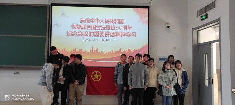 为深入学习宣传贯彻习近平总书记出席中华人民共和国恢复联合国合法席位50周年纪念会议时发表的重要讲话精神,并在广大团员青年中掀起“维护和平从我做起”的精神热潮,11月18日,太阳成集团tyc234cc21级专硕团支部全体成员在12号楼104教室开展了以“学习与实践并进,爱国与爱校共行”为主题的实践双学活动。