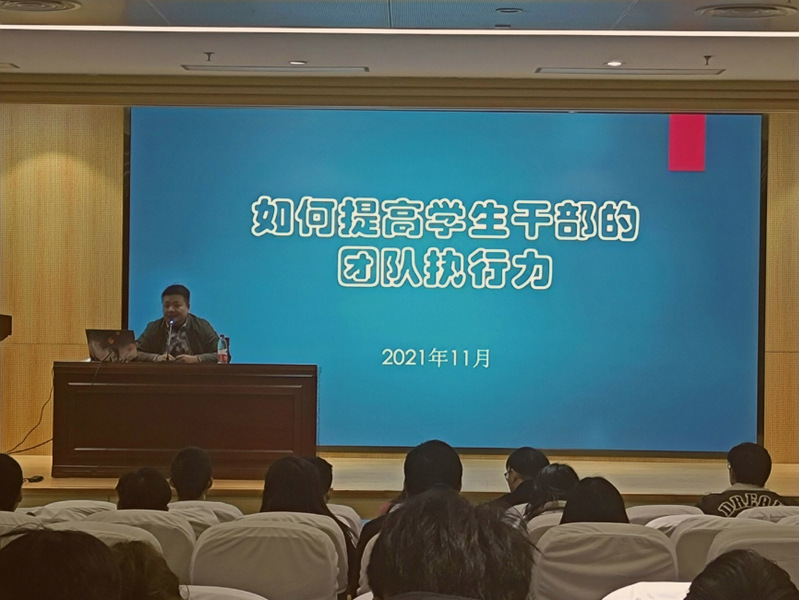 徐晶老师以团队和执行力的概念切入主题,对团队的关键因子以及如何实现团队目标进行了具体讲解,提出了团队应该从沟通协调、策略选择、职责责任、奖励机制、管理制度、内部反馈等六个方面提高团队执行力的殷切意见。在场的辅导员老师与员工骨干听后深受启发,这对于他们后续开展员工管理与班级管理将会提供源源不断的动力。