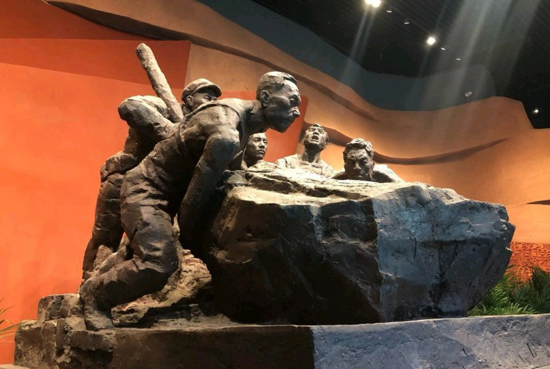 红旗渠内“红旗渠精神”雕塑(张鑫供图)