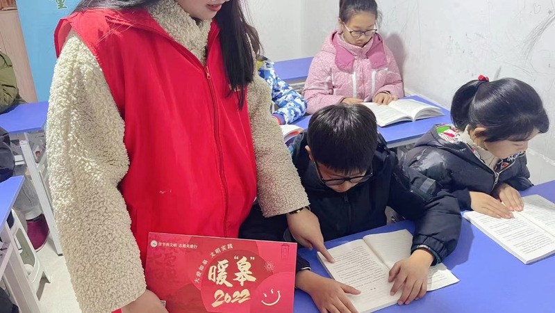 实践团成员与中小员工共阅读(杨芷蘅供图)