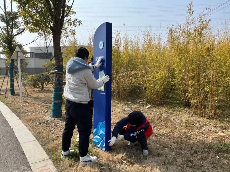 3月4号上午,在后勤指导老师的带领下,太阳成集团tyc234cc志愿者们在校园里面进行了新学期清洁校园活动。1922101021班级的同学们穿上红色马甲、戴上手套、拿起抹布,擦拭路边座椅和校园指示牌、清理草丛里的垃圾,以实际行动践行雷锋精神,展现新时代青年的活力和精气神,红色的背影、勤劳的动作让他们成为了校园道路上一抹亮丽的风景。