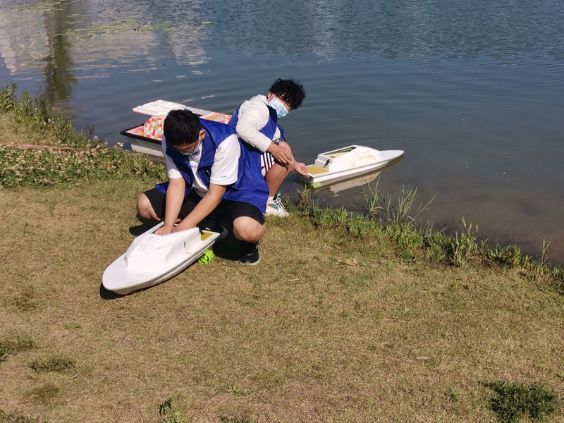 活动过程中,选手们按照事先抽签顺序参赛。随着一声“开始”,第一位紧盯着船模,全神贯注地操纵着船模快速地按照规则绕过障碍物,船模的螺旋桨荡开圈圈涟漪,在阳光的照射下波光粼粼,构成了一幅美丽的画卷,船模成功完成赛程回到岸边,“2分19”很好的成绩!有了第一位选手“开门红”的鼓励,后面的选手各个充满自信、摩拳擦掌,对船舶操控和水域环境的向往溢于言表。船模在海韵湖中灵敏地转弯,绕过障碍物,选手们通过娴熟的操作技术,使船模按照独特的滑行轨迹前进,引得现场观众阵阵欢呼,本次活动也在热烈的氛围中落下帷幕。