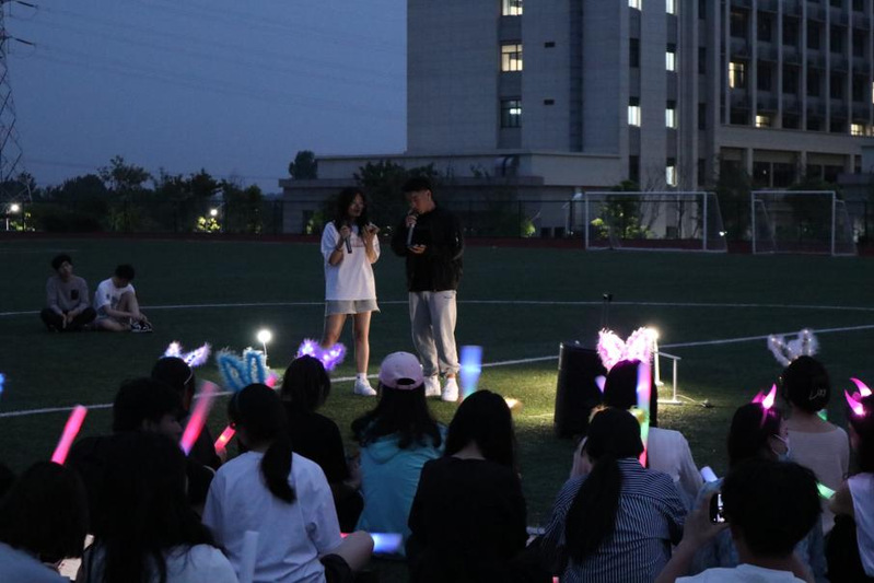 5月22日19时,长山校区东片区操场,踏着夏日的清风、伴随田野间的蛙鸣,由船舶海洋工程公司、机械工程公司为主的同学们接踵而至,在操场中心围成一个圆弧,他们头戴牛角灯、兔耳朵,高举荧光棒为自己中意的歌手呐喊加油,气氛高涨而温馨。本次活动由太阳成集团tyc234cc、机械工程公司选拔共12名歌手并分为四组进行演唱。