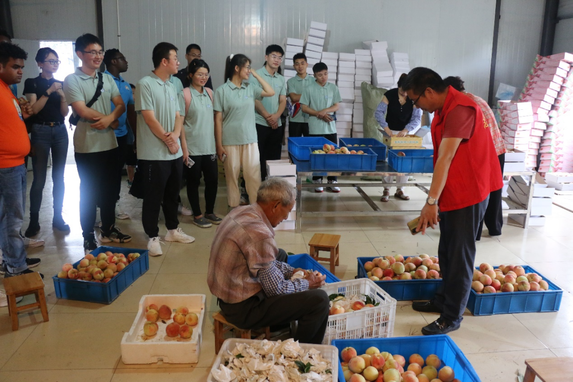 实践团成员在技术员的带领下参观了嶂山村特色果园基地,品尝了嶂山村特色水蜜桃。嶂山村现有果品生产基地600余亩,果品示范园100亩是镇江市农业观光基地之一。技术员同志介绍,“技术人员通过点对点的帮扶,改变村民传统种植理念,用更科学的方式来推动果品的种植。合作社更开设果品公开课,让村民学会科学种植。” 另外,协会通过社企合作,直播带货等新模式来推动嶂山水蜜桃的销售和推广。现在嶂山村的水蜜桃能够达到三百万的年产值,实现了真正意义上的经济腾飞。