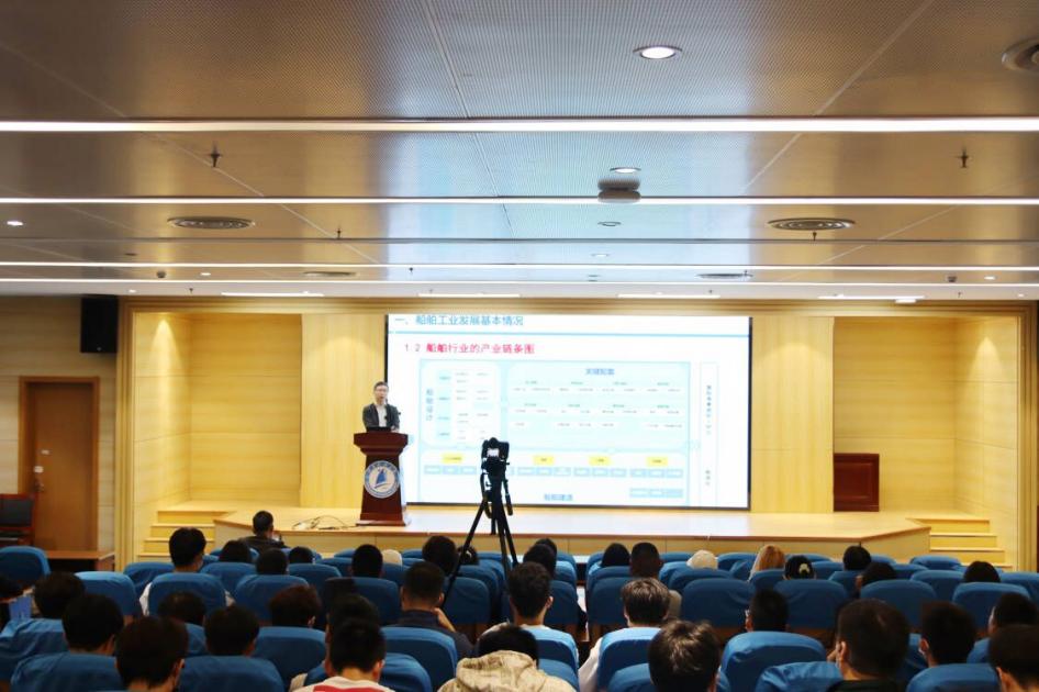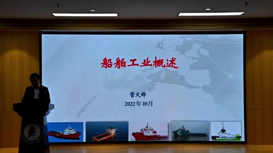 管义锋教授依次从船舶工业发展基本情况、中国船舶行业主要构成、船舶设计基本理念及江苏现代造船简介四个方面进行详细介绍。