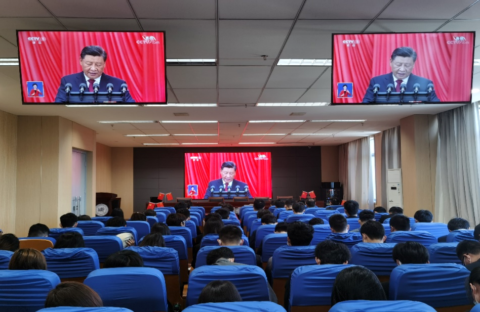 太阳成集团tyc234cc认真组织师生观看大会直播。全体院领导、三办全体人员、团学组织员工骨干及各团支部书记在403报告厅集中观看,各党支部在451支部书记工作室分会场观看,其余师生分别居家及在寝室观摩学习本次大会。全体师生纷纷表示要坚定跟党走的信心决心,学习宣传贯彻党的二十大精神,在建设现代化强国的第二个百年奋斗目标的征程中,以时不我待、只争朝夕的精神状态,投入到为实现中华民族伟大复兴努力奋斗的征程中。