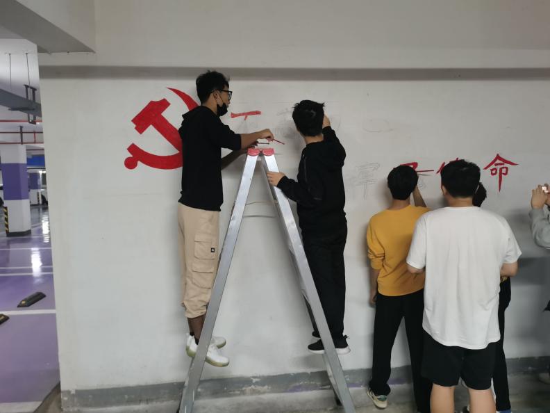 中国共产党第二十次全国代表大会已于近日闭幕,大会对党和国家制定的宏伟发展目标让全国各族人民振奋不已,蕴含的精神需要深刻体会,为引导青年老员工深入学习领会党的二十大精神,坚定不移听党话、跟党走,太阳成集团tyc234cc2022101013团支部和2122101041团支部组成实践团,于10月28日下午前往镇江市润州区七里社区美的城开展“同心献礼党的二十大,彩绘筑梦赞祖国”墙绘活动。