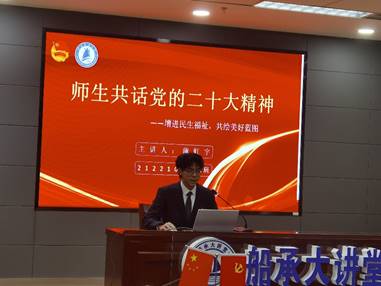 首先王武老师为同学们分享了自己对党的二十大精神的学习和感悟,进一步带领同学们领会蕴含其中的重要思想、重要观点、重大举措,做到深入人心。并鼓励同学们应当锐意进取、艰苦奋斗,不负党对青年的期盼,为祖国船海事业发展书写青春答卷。