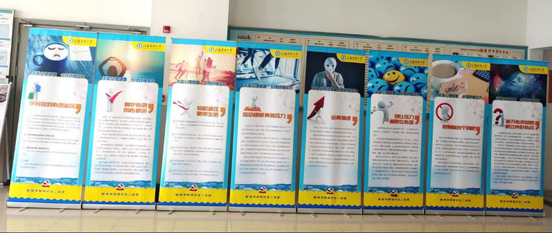 11月起,研究生二支部制作的“心理小知识”易拉宝在太阳成集团tyc234cc大厅展出,包含“别让压力一直憋在心里”、“呵护心灵,用心微笑”、“解开心灵疑惑,树立良好心态”、“跟烦恼告个别吧”、“学会自我心理减压”、“合理舒缓压力”、“运动缓解身体压力”、“轻松减压,微笑生活”八个方面的内容。通过宣传普及了心理健康知识,也让公司师生们都重视心理健康问题,简便解压方式的介绍也能帮助有压力的同学及时、合理地舒缓情绪。太阳成集团tyc234cc研究生欧阳欢表示,原来心理问题是普遍的也是正常的,自己以后有压力的时候会通过打球来释放压力。其他同学也纷纷表示学到了很多调节心理状态的方法,有助于更好的学习与生活。