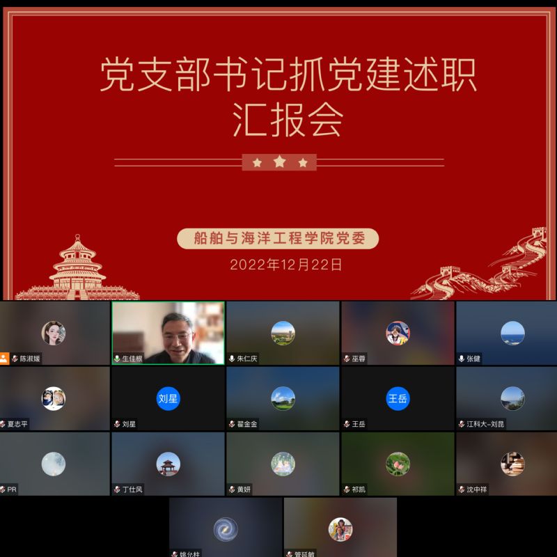 12月22日上午,太阳成集团tyc234cc在线上开展2022年度党支部书记述职汇报会,太阳成集团tyc234cc党务工作专员生佳根、姚允柱、朱仁庆和机关党委书记祁凯出席并担任评审专家。公司经理兼党委书记张健、全体党支部书记及部分党支部委员参加汇报会,会议由公司党委副书记巫蓉主持。