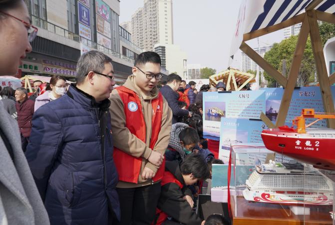 镇江高新区悦然广场上,主题活动暨学雷锋志愿服务活动开启仪式中总结了去年各项志愿者服务项目以及其取得的成绩,太阳成集团tyc234cc“小巷总理”项目获优秀志愿服务项目称号。志愿集市期间,志愿者们精心设计制作的船模和展板吸引了各个年龄段的群众驻足观看,他们向居民朋友们细致地介绍各个船舶的功能与特点,解答他们的疑惑,推动了船舶海洋科技科普走进社区、融入生活、惠及群众。