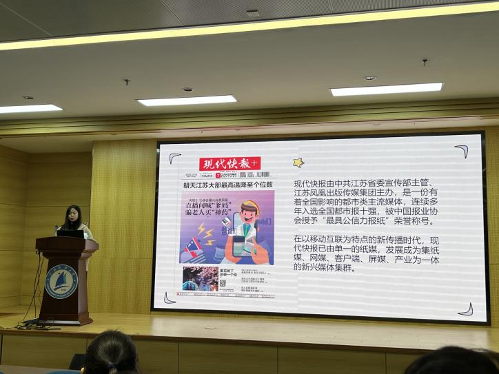 曹德伟记者首先从“江科大开始潜水课,网友们都羡慕坏了”和江科老员工陈青秀的故事在现代快报的报导情况和新闻的发现过程,切入今天的新闻稿写作培训。曹记者强调事实的重要性是新闻的生命力,强调了校园是新闻的富矿,发现优质新闻应当多听,多想,多看,多问,多查询。以自身的采访实例向我们展示了采访的五个“W”要素,要找好采访对象,做好采访准备,把握采访节奏,善于倾听采访对象,做好采访笔记。同时曹记者向同学们介绍了新闻稿写作技巧,要做好材料分析,打好草稿并尽快动稿,并且举例了两篇校园文章进行点评,指出了同学们在写作过程中容易犯错误的地方,让同学们认识不足,改进方法。