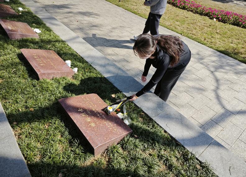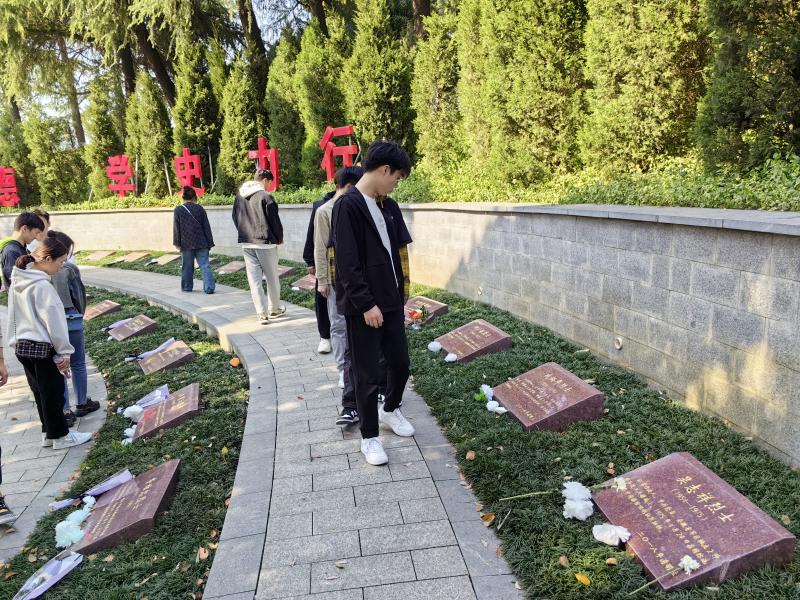 随后,同学们留步驻足于各个烈士的碑墓前,看着碑墓上有关烈士们的介绍,大家仿若面对面与他们交流一般,用他们的精神浇灌着同学们的灵魂。哀思如春风般吹向远方,伴着同学们手中的花束也一同留在了那里。最后,同学们全程安静肃穆地参观了镇江烈士纪念馆,了解了各个时期镇江地区的伟大战役和烈士事英烈事迹,并在纪念馆内回顾了入党誓词,无声中从革命先烈手中接过了党的伟大事业。