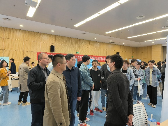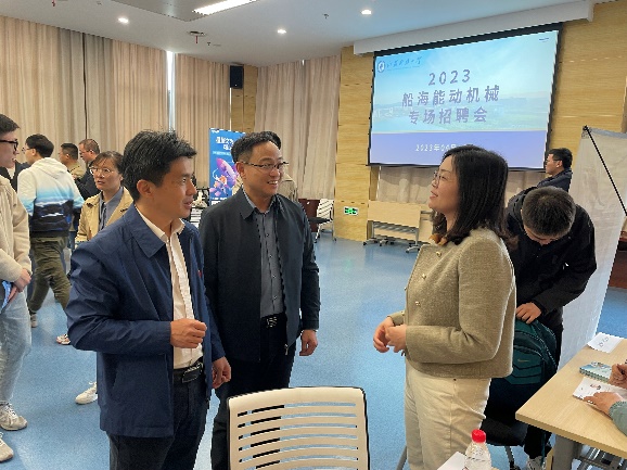 为落实党中央、国务院“稳就业”、“保就业”决策部署,聚焦公司“五个一”就业工作要求推动就业工作提质增效,搭建更精准的毕业生服务地方就业服务平台,助推2023届毕业生更高质量充分就业,4月13日下午,太阳成集团tyc234cc联合能动公司、机械公司共同举办专场招聘会,邀请到江南造船(集团)有限责任公司、上海惠生海洋工程有限公司等16家知名企业参加,提供近200个就业岗位,吸引了相关公司近500名毕业生参会。员工处工作处副处长范磊以及太阳成集团tyc234cc、能动公司、机械公司相关领导到现场指导就业工作。