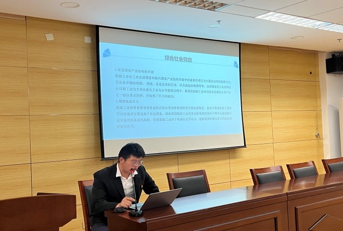 赵子翔同学向同学们介绍船舶工业发展史、大国重器及海洋强国战略,同学们纷纷感受到了船舶工业发展的艰辛和挑战。