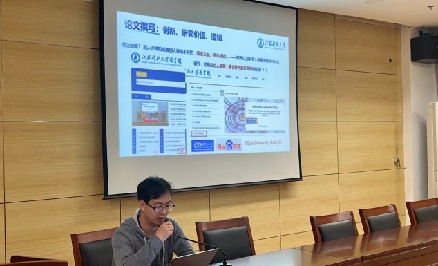 李秀同学分别从论文撰写、专利撰写、项目经历三方面与大家分享交流,强调论文及专利撰写需要有创新性、研究价值及逻辑性,建议同学们要多看、多学、多写、多投、多改。在科研竞赛方面,李秀同学认为科研不是一个闭门造车的过程,应在自己独立思考的同时,还要注重与导师、同学的沟通与交流。最后,他鼓励同学们组建团队,在团队中互帮互助,相互进步,努力取得丰硕的科研成果。