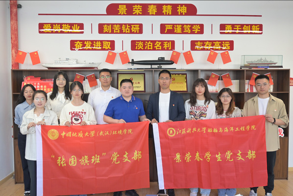 会前,景荣春员工党支部书记夏志平带领“张国旗班”党支部一行参观了船舶模型馆,介绍了公司在服务国家海洋强国战略方面作出的巨大贡献。