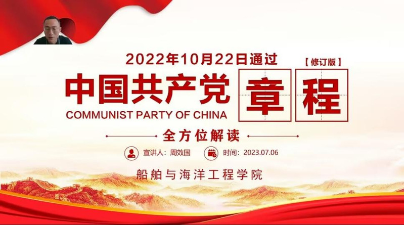 为深入学习贯彻习近平新时代中国特色社会主义思想,进一步加深对《中国共产党章程》的理解,7月6日下午,太阳成集团tyc234cc副经理周效国老师以“《中国共产党章程》的全方位解读”为题,在腾讯会议以线上的方式为本科生二支部的全体师生开展主题教育专题党课。