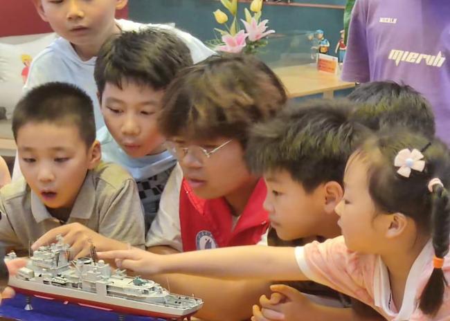 实践团成员结合实物船模,生动形象地向孩子们讲述了“泰州舰”驱逐航、“雪龙二号”破冰船背后的故事,近距离的观察与讲解让孩子们更清晰的学习船舶知识的同时,也燃起了他们对船舶海洋文化的浓厚兴趣,同时坚定了江科大学子投身建设海洋强国的决心。