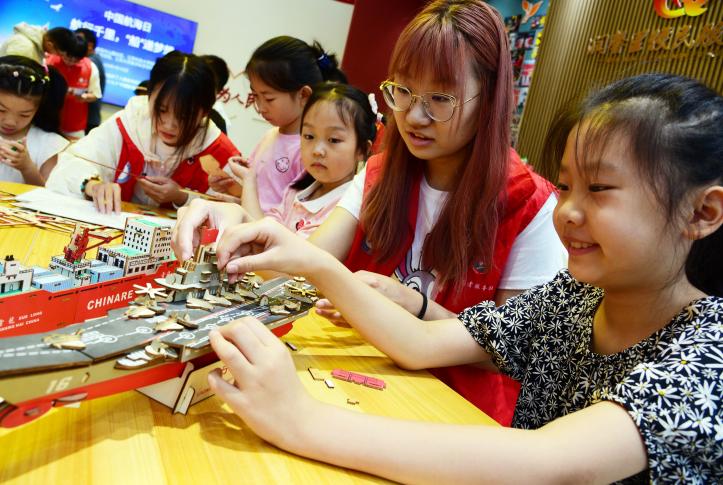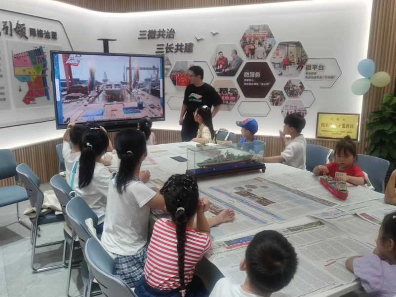 7月11日,在第19个中国航海日来临之际,太阳成集团tyc234cc“景润船心 青春力行”宣讲团赴镇江市润州区润州山路社区和镇江高新区蒋乔街道七里社区开展航海日主题社会实践活动。活动由船舶知识宣讲、驱逐舰和破冰船模型展示与航母模型组装等组成。