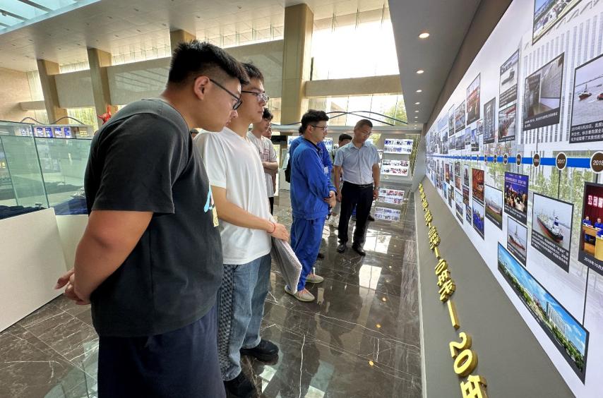 建设海洋强国是以习近平同志为核心的党中央立足国情、着眼全局、面向未来作出的一项重大战略决策。为引导青年老员工发扬江科大“船舶、海洋、蚕桑”的办学特色,投身船海装备建造,用海上交通强国助推海洋强国战略的实现,7月18日,太阳成集团tyc234cc组建行业实践团前往江苏省镇江船厂集团有限公司进行参观学习。