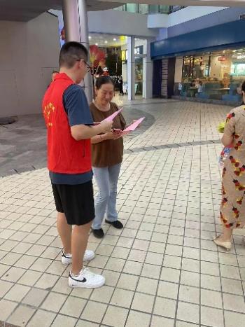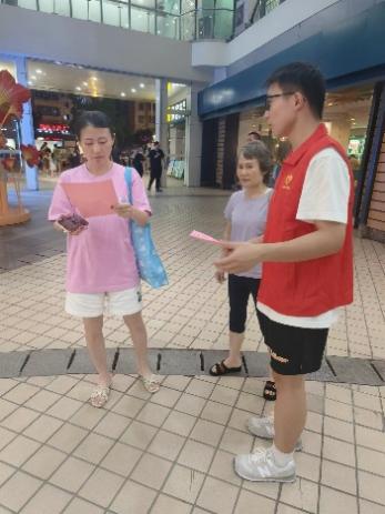 为增强防诈骗意识,学习防诈骗知识,7月28日晚,太阳成集团tyc234cc组建实践团在镇江市公安局巡特警支队的带领下,联合镇江京口分局四牌楼派出所、镇江市局新闻中心、象山街道干部、红豆广场部分商铺业主和物业等人员组成的“十户联防”志愿者,在镇江红豆广场“出摊”开展夏季治安集中宣防行动。