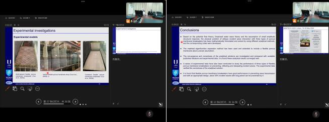 Carlos Guedes Soares教授讲授了一种新型的柔性多孔膜防波堤防波堤结构。首先详细阐述了柔性多孔膜防波堤的主要研究方法、需要解决的问题,以及该种材料在海洋工程中的应用情况;其次Carlos Guedes Soares教授讲授了解析法验证三种不同柔性多孔膜防波堤在斜波作用下的收敛性和正确性;随后演示了通过实验的方法研究分析另外三种柔性多孔膜防波堤在规则波和不规则波下的消波表现,同时得出结论,在合适的设计参数,柔性多孔膜防波堤可消耗约30%的长波。Carlos Guedes Soares教授表示本研究为柔性多孔膜防波堤未来在工程中的实际应用提供了理论参考。最后,在讲座的自由交流环节,在场的师生踊跃发言提问,Carlos Guedes Soares教授对提出的各类问题都进行了充分的解答。