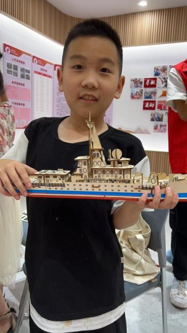动手实践过程中,实践团成员带领小朋友们一同绘制梦想中的船舶简画,摇身变为小小造船师;一起手拼广州号驱逐舰,感受军舰的宏伟雄姿;一起制作电动小船,在水池中扬帆起航,感受逐梦海洋的壮阔。实践课程培养了孩子们的动手能力,激发了孩子们对船舶设计与建造的兴趣,增长了他们的见识。