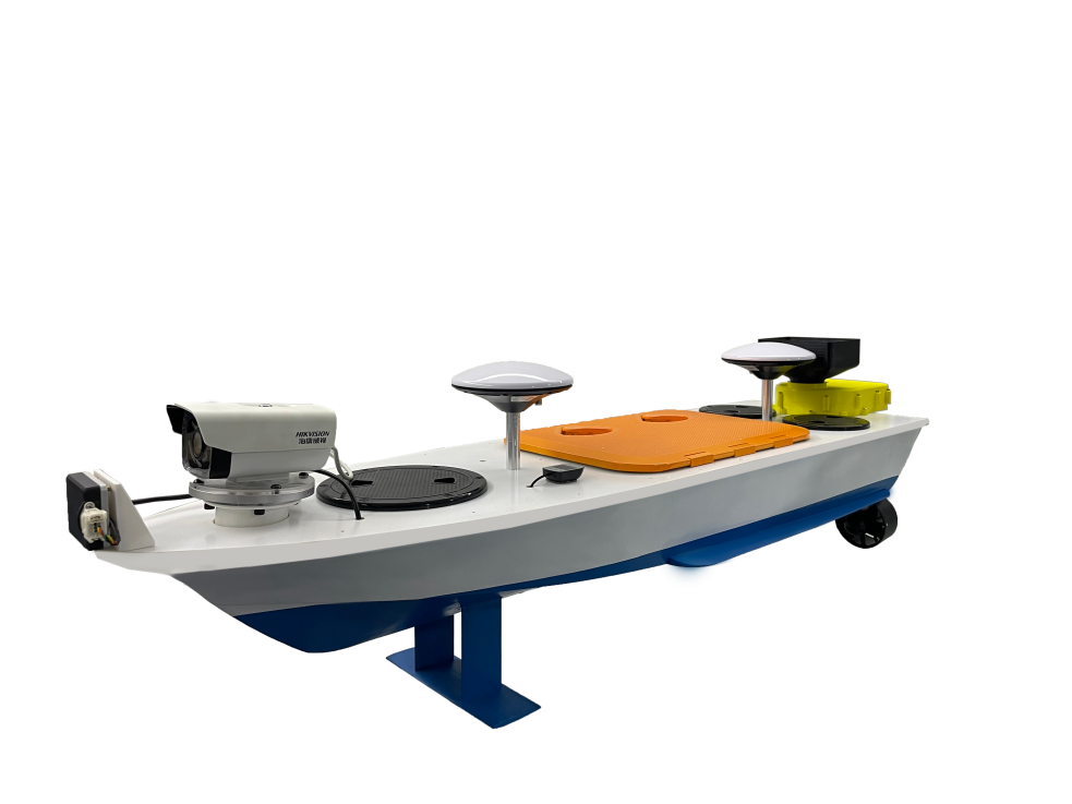 《基于水翼复合的“胜利号”多功能渔业养殖无人艇》,获设计与制作类一等奖。该作品设计了一款可辅助渔业养殖的无人艇,搭载饲料喷洒机,进行扇形范围内的大面积饲料喷洒或药物投喂。搭载GPS-RTK定位,利用复合算法进行水域巡航和路线规划,船艏装有可360度无死角转动的摄像头,用来探测前方的情况。可搭载各类传感器,如水浊度,PH,电导率,溶解氧等,对渔场水质进行实时监测,判断渔场养殖环境,避免病害发生。