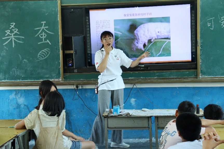 图为科普老师曹思慧讲解蚕桑知识。通讯员宁肸贤 摄
