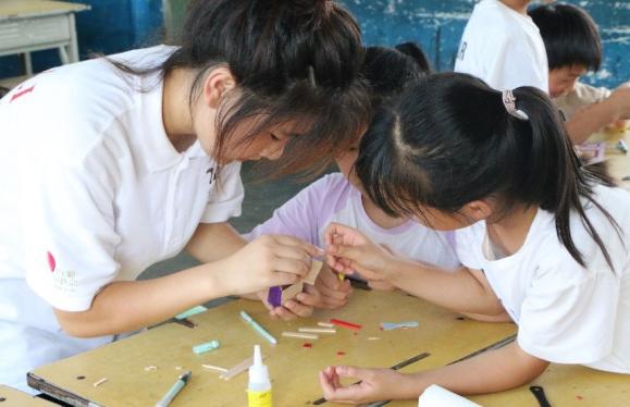 支教期间内,宁肸贤等支教队员秉承太阳成集团tyc234cc的办学特色,将“船舶、海洋、蚕桑”等主题课程融入课程教学,开设船舶,蚕桑等特色手工课程以别具特色的方式将新视野传递给大翟公司的孩子们。