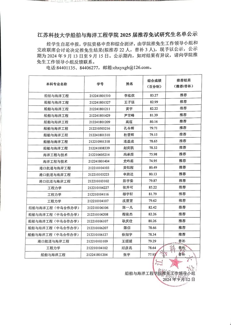经员工自愿申报,公司资格申查和综合测评,由公司推免生工作领导小组和党政联席会讨论决定推免生结果(拟推荐22人,替补3人),现予以公示,公示期为2024年9月13日至9月15日。公示期内,如对结果有异议,请向公司推免生工作领导小组反馈联系。