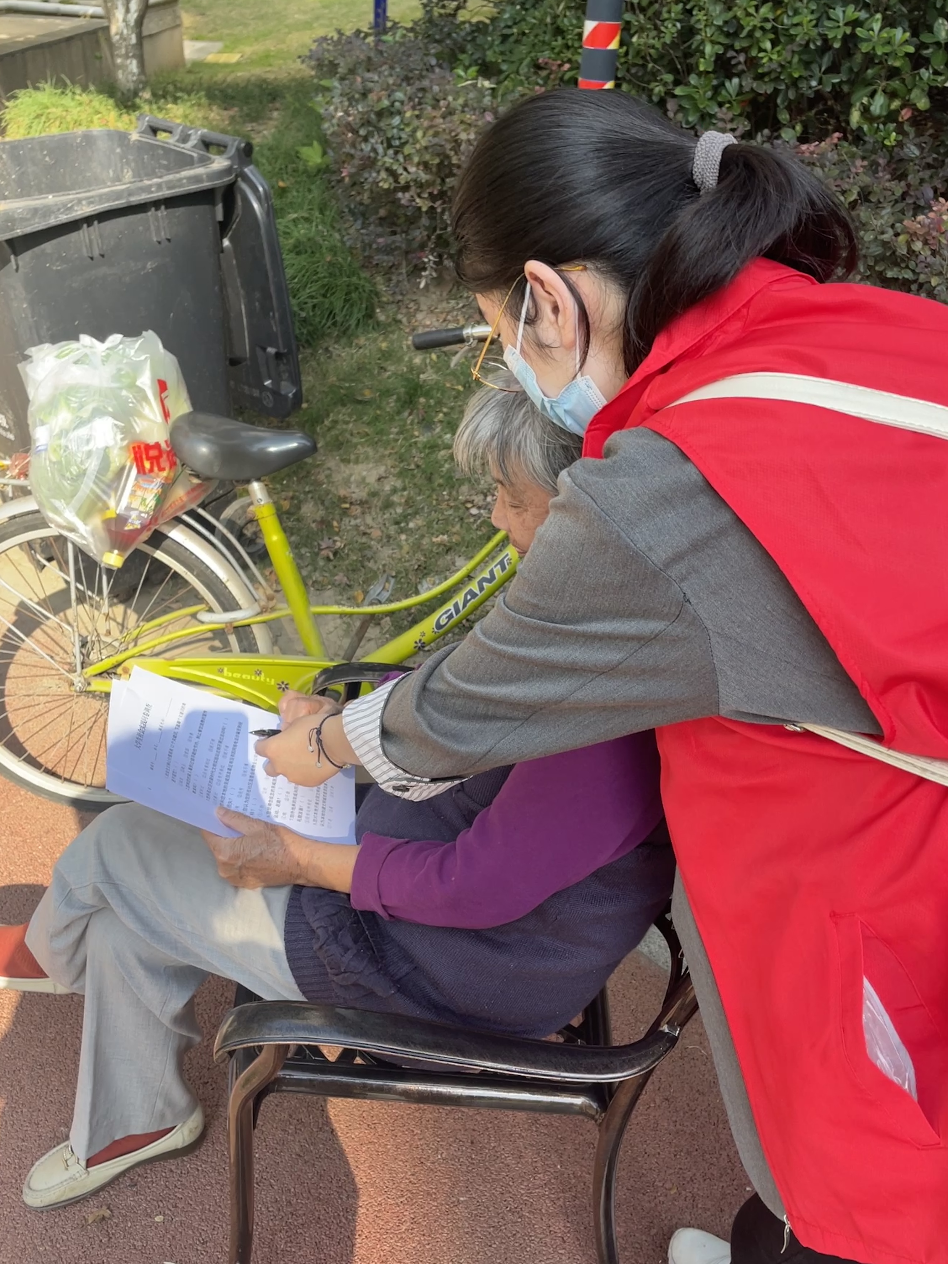 图为志愿者调查社区居民对环保的认识 张垚 供图