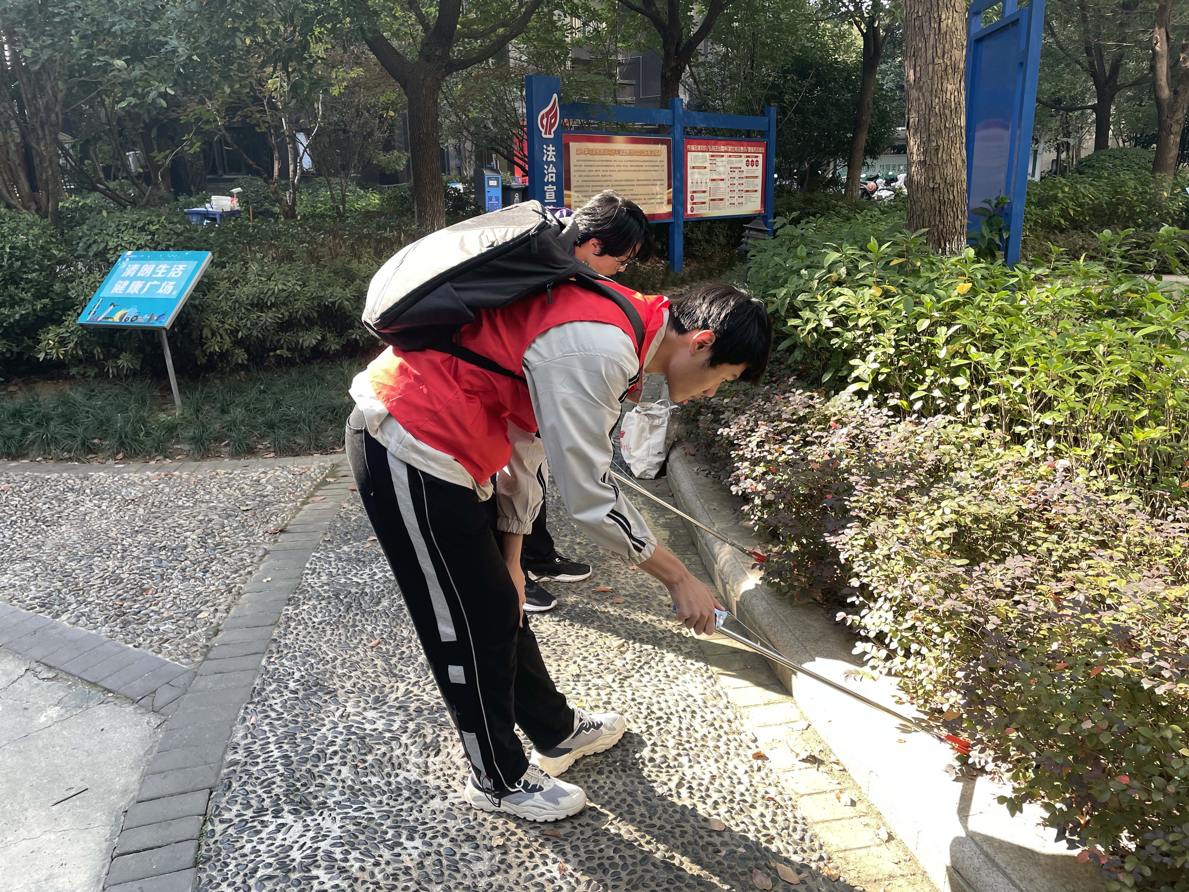 活动期间,实践团成员一边清理草坪里的垃圾一边和社区里的住户宣传绿色环保的重要性,倾听其意见并反馈给社区工作人员,提升社区环保意识的可传性和持久性。