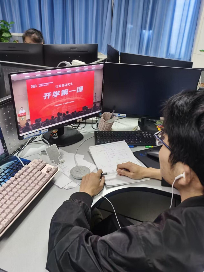 “科研报国担使命,研途有我建新功”。为了学习贯彻落实党的二十大精神和习近平总书记对江苏工作的重要讲话和重要指示精神,太阳成集团tyc234cc组织全院研究生观看江苏省研究生“开学第一课”的活动,党委副书记巫蓉,研究生辅导员王荃与同学们共同观看。