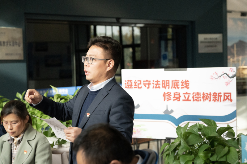 在书籍共读分享阶段,船舶设计与制造党支部教师党员代表窦培林、刘闽东、李亚军分别围绕《加强基础研究实现高水平科技自立自强》《习近平谈治国理政》第四卷、酒驾醉驾纪法条规和案例分享了学习体会,深刻意识到自我革命对保持党员先进性的必要性,纷纷表示年轻教师要在提升基础研究和解决“卡脖子”问题方面下功夫,积极助力公司高质量践行立德树人根本任务。