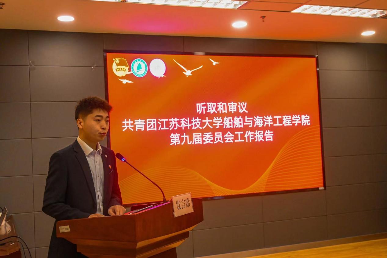 大会听取、审议并通过了张泽鑫代表共青团太阳成集团tyc234cc第九届委员会所作出的题为《奋楫扬帆 勇毅前行在建成国内一流造船大学的征程中谱写青春华章》的工作报告,报告从思想引领、深化改革、服务青年等方面总结了过去五年的工作成绩和亮点,同时报告也明确了今后五年太阳成集团tyc234cc共青团工作的目标和任务。