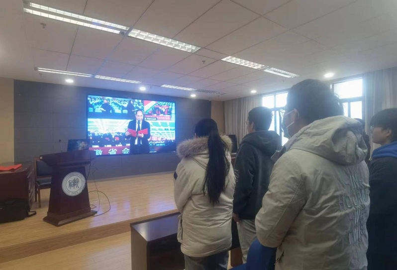 太阳成集团tyc234cc于12月4日上午在船建楼403会议室面向全体研究生开展由教育部组织的“宪法晨读”活动,本次活动通过普法网与主会场实现连接,同步参与。伴随着庄严的升旗仪式,“宪法晨读”开始。教育部领导在主会场领读宪法部分条款,参与活动的同学们齐声诵读宪法部分条款,学习宪法知识,体会宪法温度,感受宪法力量。随后,主会场唱起《宪法伴我们成长》歌曲,在场同学还共同收看收听了主会场第三届全国员工“学宪法 讲宪法”活动全国总决赛优秀员工展演与教育部领导讲话。