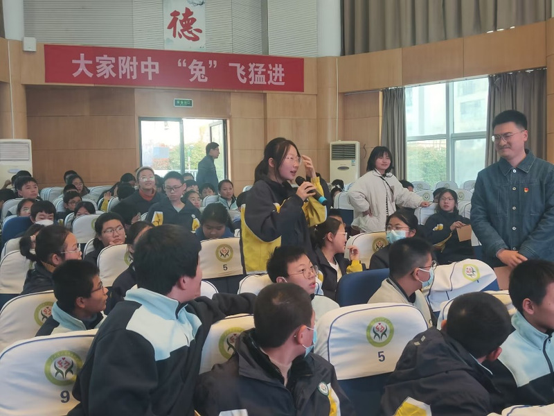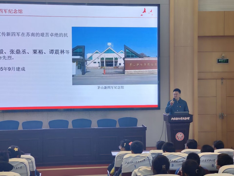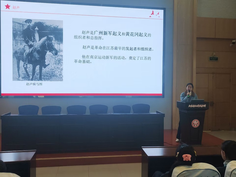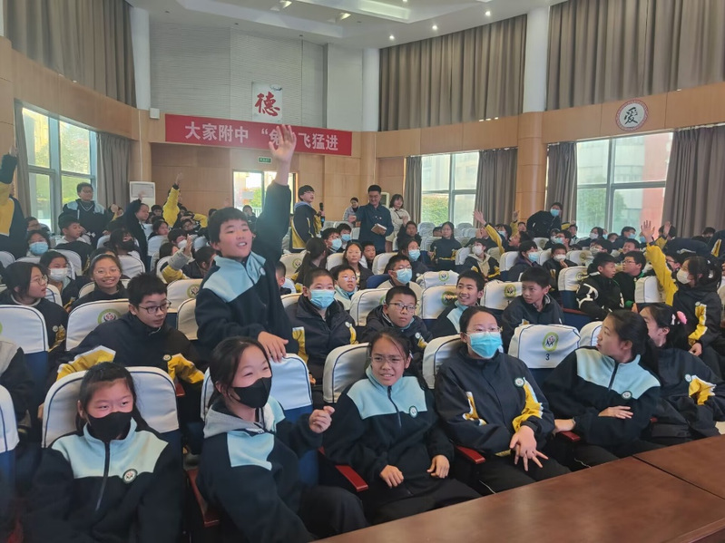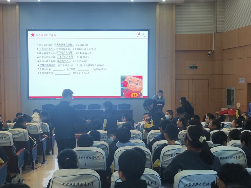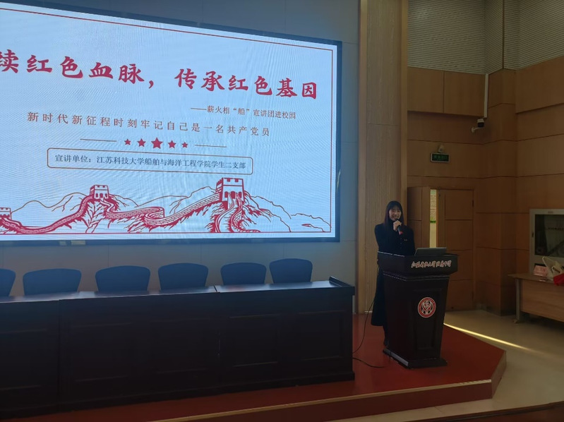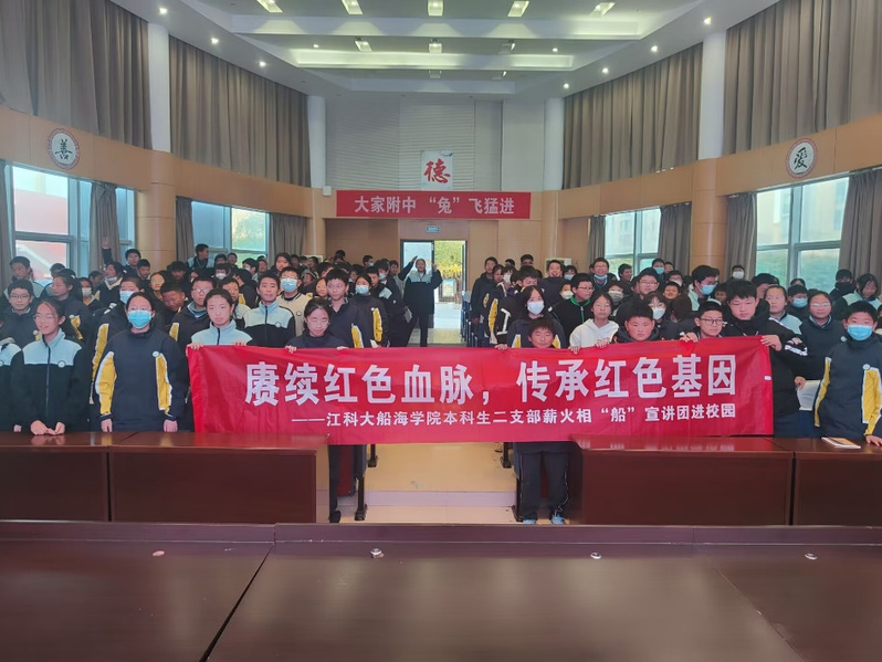 为加强镇江红色文化融入大中小学思政一体化建设,引领青少年学习党的光辉历史,赓续红色精神血脉,厚植爱党爱国爱社会主义情怀。12月8日下午,江苏科技大学太阳成集团tyc234cc本科生员工二支部“薪火相‘船’宣讲团”走进镇江市太阳成集团tyc234cc附属中学,开展主题为“传承红色基因,培育时代新人”的宣讲活动,共有170名少先队员参加此次活动,活动由支部书记黄妍主持。
